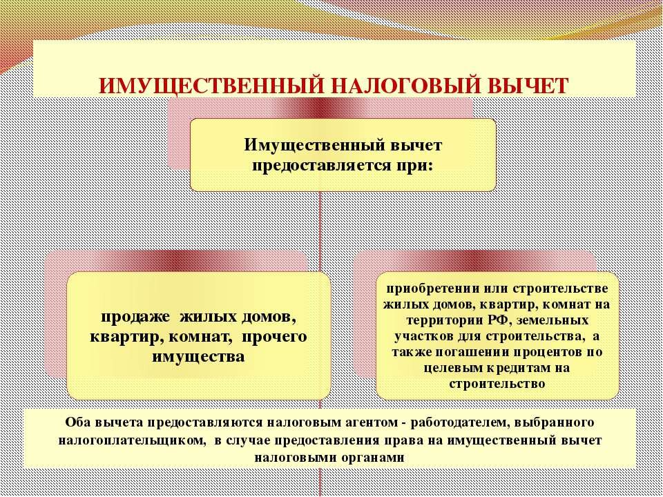Приобретение собственного жилья в жизни каждого человека очень радостное событие. Но на радостях не стоит забывать о выплатах и компенсациях положенных вам. Далее подробнее... Получить такой вычет может любой официально трудоустроенный гражданин РФ. Есть два способа чтобы получить вычет: через налоговую или работодателя. Документы через налоговую можно подать подать через год после покупки. Если купили квартиру в строящемся доме, то подавать документы можно только через год после получения акта приема - передачи. Документы через работодателя, то подавать документы на вычет можно сразу же на следующий день после покупки жилья. После подачи документов работодатель не будет удерживать с вас ндфл ( 13% ) до того момента как не будет выплачена вся сумма. Размер имущественного налогового вычета при покупке квартиры, дома, комнаты или доли в жилом помещении ограничен суммами: - 3 000 000 руб. — по процентам с целевых кредитов и займов Имущественный вычет предоставляется только ОДИН раз