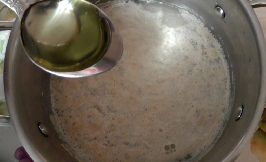 Дрожжи запузырились, значит активность есть. Добавляем растительное масло