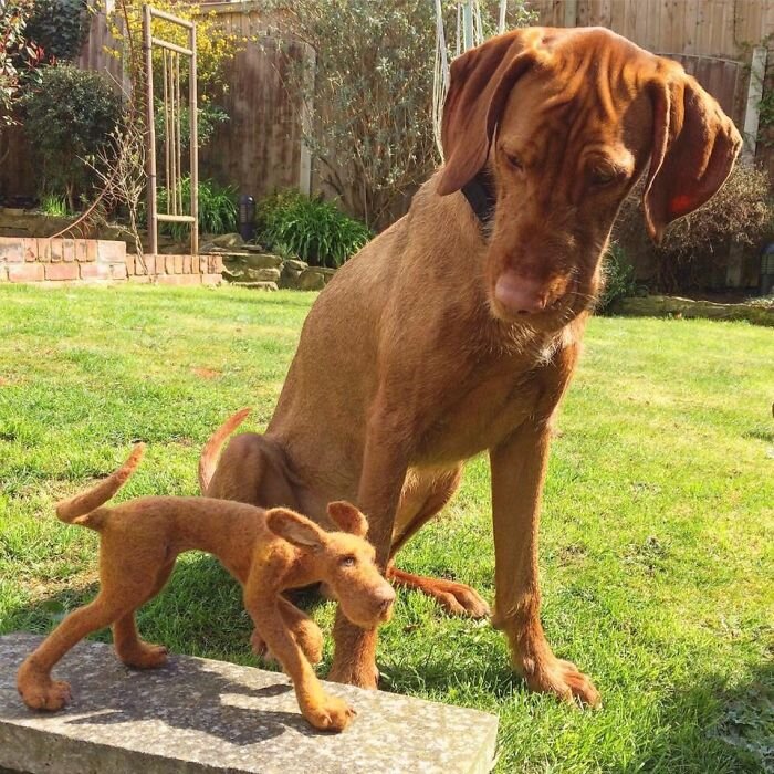А вот рукодельница из Англии, Микаэла Бартлетт очень любит свою собаку Фрэнка. Не только любит, но и считает своей музой. Поэтому она вдохновилась и смастерила Фрэнку друга. Точнее шерстяных друзей! Теперь в доме Микаэлы живет не одна венгерская выжла, а целая рыжая компания. Рукодельницу вдохновляют братья наши меньшие. Она создает шерстяные копии не только Фрэнка, но и других собак. Но в ее коллекции много реалистичных и милых работ не только с собаками. Там можно встретить, например, лис, барсуков, белок, а также забавного ёжика. Разглядывать их одно удовольствие! Инстаграм Mikaela Bartlett: https://www.instagram.com/mikaelabartlettfelt/ Вдохновляйтесь. Творите. И делайте этот мир прекраснее! Всегда Ваш Рукоделов. www.rukodelov.ru