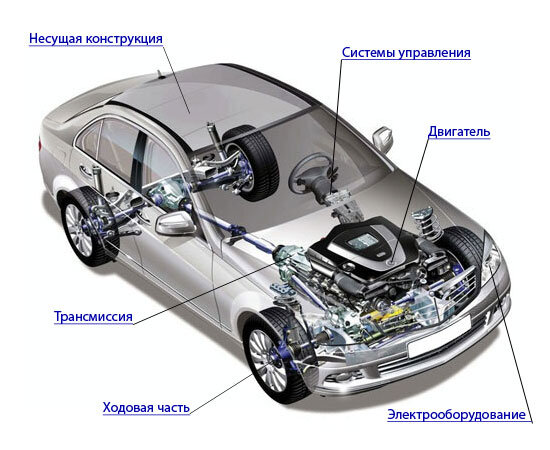 Безусловно, в устройство современной машины входит множество разнообразных узлов и деталей, но даже среди них можно выделить основные: