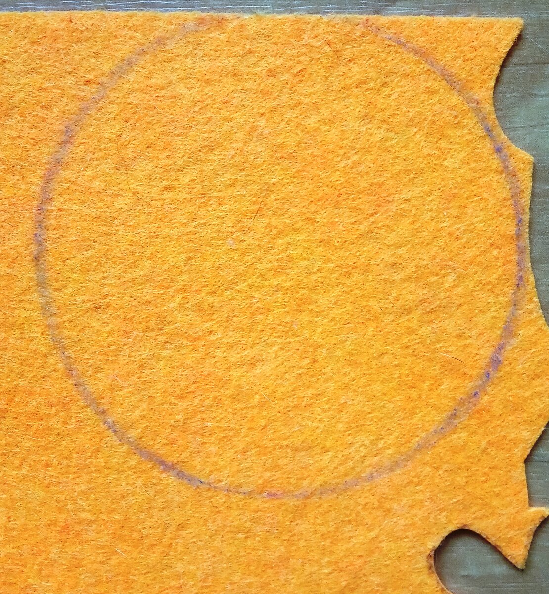 Всем привет. Пару дней назад к нам в гости приехала Полинина сестричка. Девочки сразу стали играть в куклы. Темой игры стал обед. И если посуды для кукол у нас достаточно, то вот еды таких маленьких размеров нет. Ну дочка и попросила меня сделать какую - нибудь еду. Мы вместе подумали и решили, что пицца прекрасно подойдёт. Для начала мы нарисовали круг нужного размера на оранжевом фетре (это будет сам корж). Этот круг мы вырезали и расчертили на 8 частей (как обычно режут пиццу), (одна полоска лишняя - это мы промахнулись, не обращайте внимания). Затем мы вырезали "треугольник" из картона, по размеру чуть меньше нашего кусочка пиццы. Он нам понадобится чуть позже. Далее мы вырезали круг из красного фетра. Он должен быть меньше, чем оранжевый. Это будет соус. Затем мы взяли картонный "треугольник" и вырезали по нему 8 жёлтых кусочков. Это будет сыр. Чтобы треугольнички больше походили на сыр, мы прорезали кое где дырочки. Так же мы нарезали малюсеньких кружочков бардового цвета. Это бу