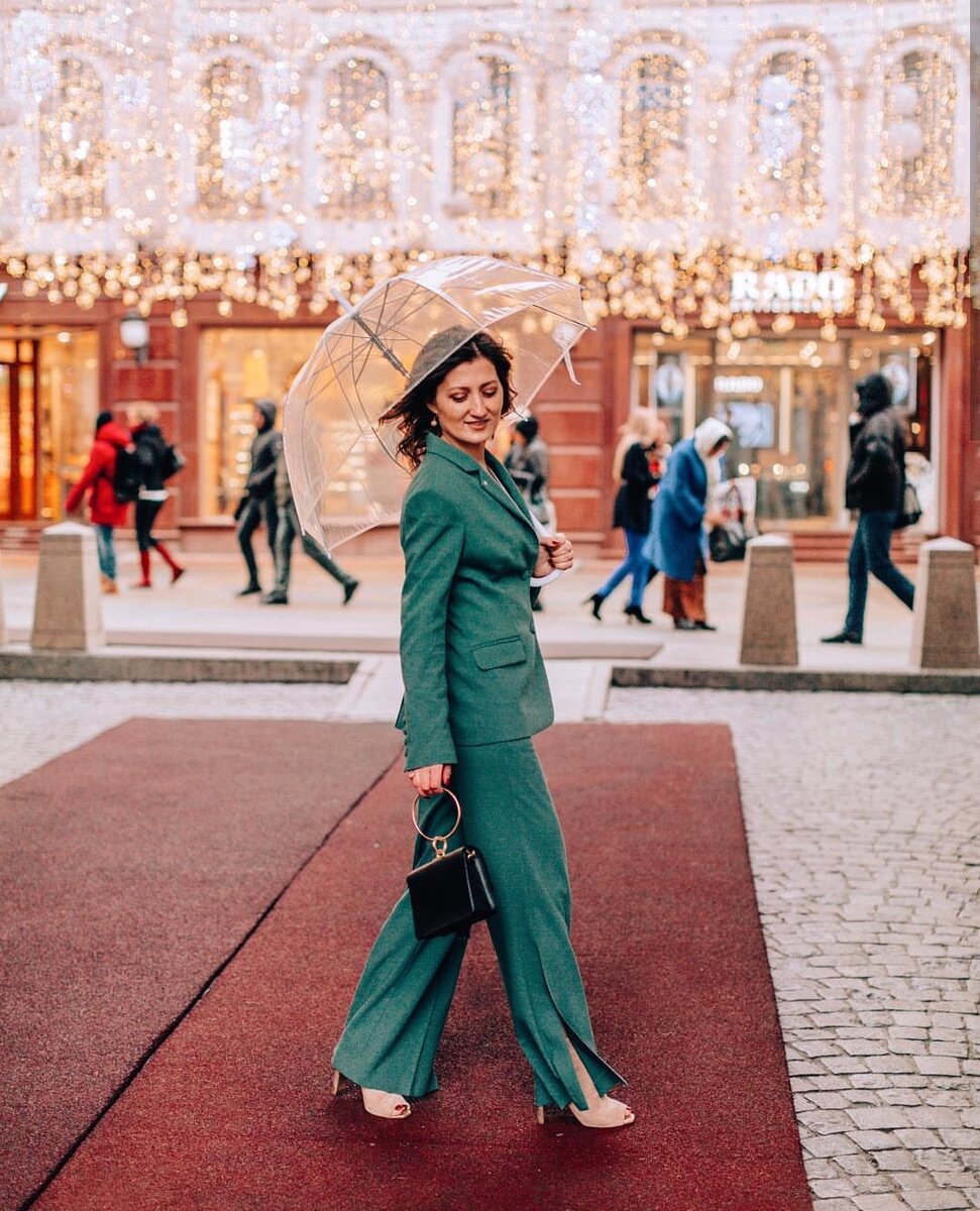 У меня не было никогда вещей зеленого цвета (я предпочитаю любой цвет, при условии , что он красный)))) и у меня не было брючных костюмов. Пиджаки были, когда я сдавала экзамены в школе и институте, я любила прятать там шпоры. Но, прошли те времена, а мне захотелось чего-то новенького. А именно костюм!