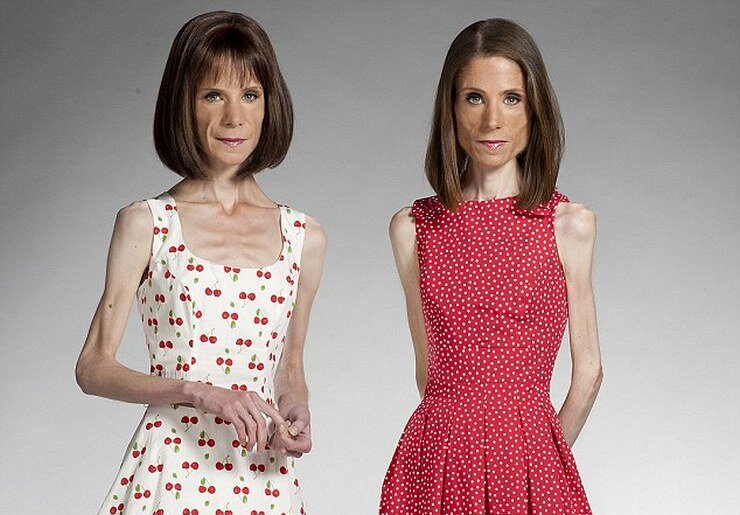 Открывают список самых худых людей в мире сестры-близняшки Мария и Кэти Кэмпбелл. Обе приобрели анорексию в порошковом возрасте. К 33 годам выглядели дамами за 60. При среднем росте вес каждой не более 40 кг. Обе имеют медицинское образование, но справиться с болезнью не в состоянии. Тихо угасают. Понимают, что дни их уже сочтены, но не теряют надежды на выздоровление. Мечтают о нормальных семьях и детях.