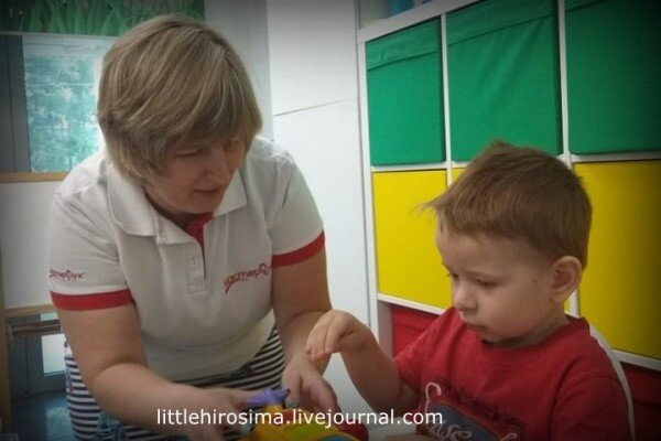 Вчера у них начались занятия с потрясающим педагогом из этой клиники = Ириной Александровной (на фото выше с Родионом).
