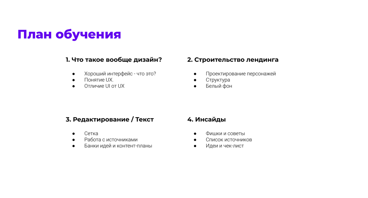На этой неделе я рассказу только первый блок из моего плана обучения.