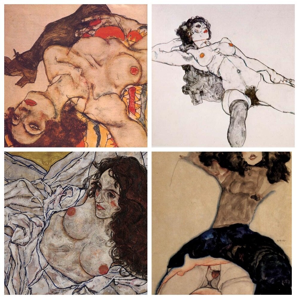 Создавая свои работы, Шиле пошел дальше своего учителя и его сдержанного эротизма. Его картины были более откровенными, он не стеснялся использовать искажения, манерные удлинения и сексуальность. Он быстро привлекал к себе дурную славу своими откровенными обнаженными работами. Сам император Франц Иосиф назвал его работы «абсолютно отвратительными!». Его картины часто снимали с выставок по причине их «непристойности». В своих работах Шиле боролся с социальным лицемерием общества того времени. Строгие запреты и кодексы, поддерживаемые на виду, отбрасывались обществом в тайных клубах и ложах, где творился настоящий разврат. Чем сильнее давила эта репрессивная культура, тем красочнее цвел извращенный мир внутри общества.