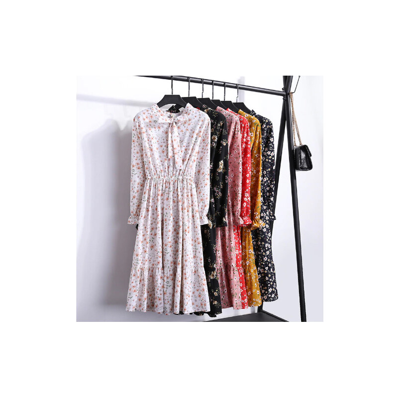Качественные и недорогие летние платья с Aliexpress. В КОНЦЕ СТАТЬИ ВАС ЖДЕТ БОНУС! Платье №1 Шифоновое платье с эластичной резинкой на талии, длинным рукавом и цветочным принтом.
