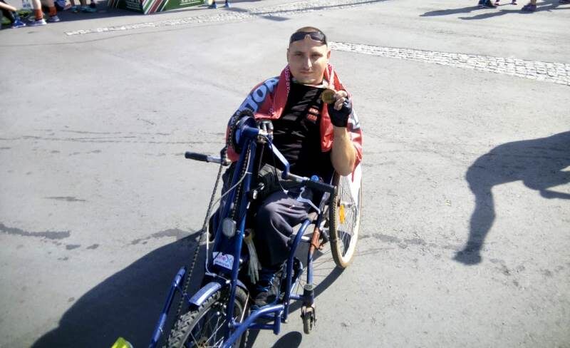 Однако его транспортное средство, старенькая инвалидная коляска, больше напоминающая велосипед, давно требует модернизации. О том, чтобы купить новую приставку, Дмитрий и не мечтает, так как это требует огромных средств, которых инвалиду не потянуть. И вот, появился шанс, купить хотя бы б/у: