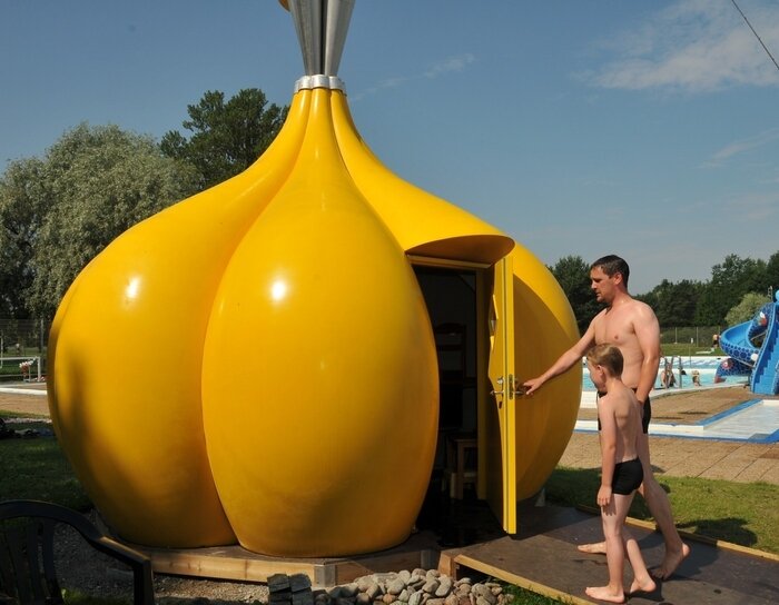 Финляндия является лидером по количеству оригинальных бань и саун. В городе Турку вы можете увидеть оригинальную Сауну-луковицу. Название постройка получила из-за своего внешнего вида. Своими очертаниями сауна действительно напоминает луковицу, а выкрашенные в желтый цвет стены усиливают впечатление. Есть у необычной бани и еще одна особенность – внутренняя акустика, которая меняется в зависимости от того, как попадает вода на каменку.