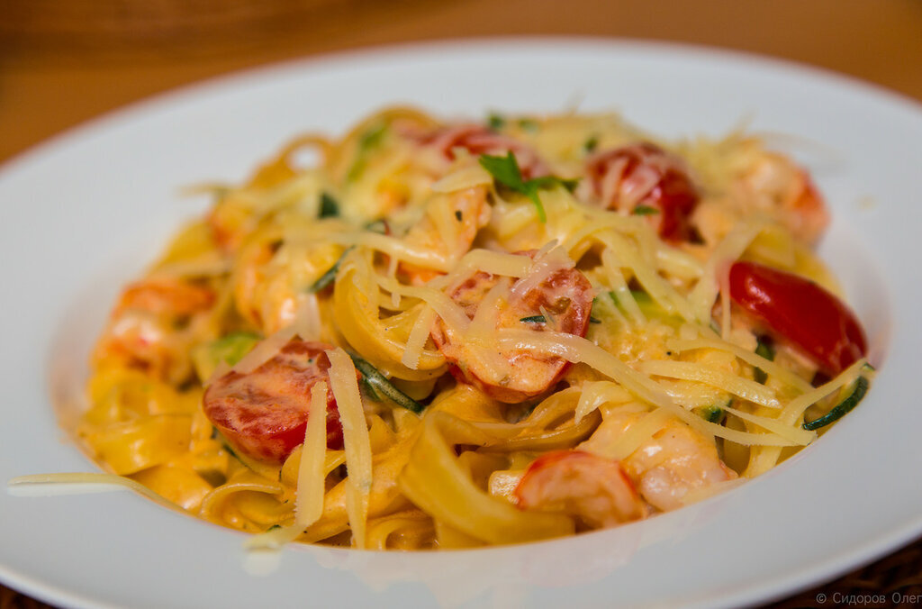 Лето хорошо, овощи еще лучше, а кушать все-таки хочется. Не получается у меня здоровой жизни на одних овощах да фруктов. На третий день начинает сниться мясо. Или рыба. Или креветки. Даже макароны — и те снятся! Можно, конечно, посчитать это происками врагов (каких только), но ради сохранения исторической справедливости скажу — просто люблю поесть. Вкусно поесть. Да и не могу функционировать исключительно на зеленом корме, даже в жару. А потому — сегодня в программе тальятелле. Мне нравится этот вид пасты. Уж не знаю почему, просто нравится, и все. Пожалуй, даже больше, чем спагетти. Тальятелле — из-за своей формы и размера — имеют чуть иной вкус. Они широкие и плоские, на них лучше себя чувствует соус. Кстати: небольшой итальянский лайфхак: чем «длиннее» паста, тем «жиже» должна быть ее окружающая среда. То есть спагетти и тальятелле топим в соусах жидких, с мелкими составляющими, а джемелли, например, зити или каватаппи — подаем только с густыми наполнителями, такими, в которых