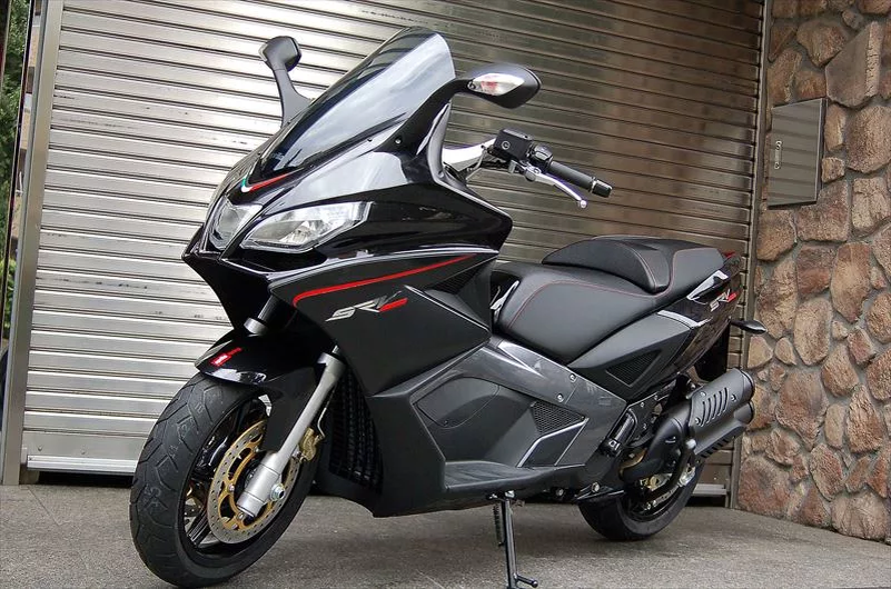 В конце 2010 года известнейший производитель двухколесной техники компания Aprilia показала миру новый скутер SRV850, который одновременно стал самым мощным и быстрым на земле! В движение его приводит двухцилиндровый двигатель типа V-twin с восемью клапанами, объем которого составляет отнюдь немаленькие 840 кубических сантиметров. Трансмиссия — CVT, привод — цепной. Согласно утверждениям производителя, максимальная мощность силового агрегата достигает 76 лошадиных сил при 7 750 оборотов в минуту, а максимальное значение крутящего момента составляет 66,4 Нм. Что касается скорости, то мотороллер способен развивать аж целых 205 километров в час! Представьте, каково будет удивление инспекторов, которые увидят такой быстрый двухколесный агрегат… Кстати, размер скутера тоже немаленький, хотя производитель утверждает, что его легко перекатывает с места на место человек среднего телосложения. И это несмотря на то, что вес байка составляет 249 кг. Как утверждают владельцы SRV850, несмотря на
