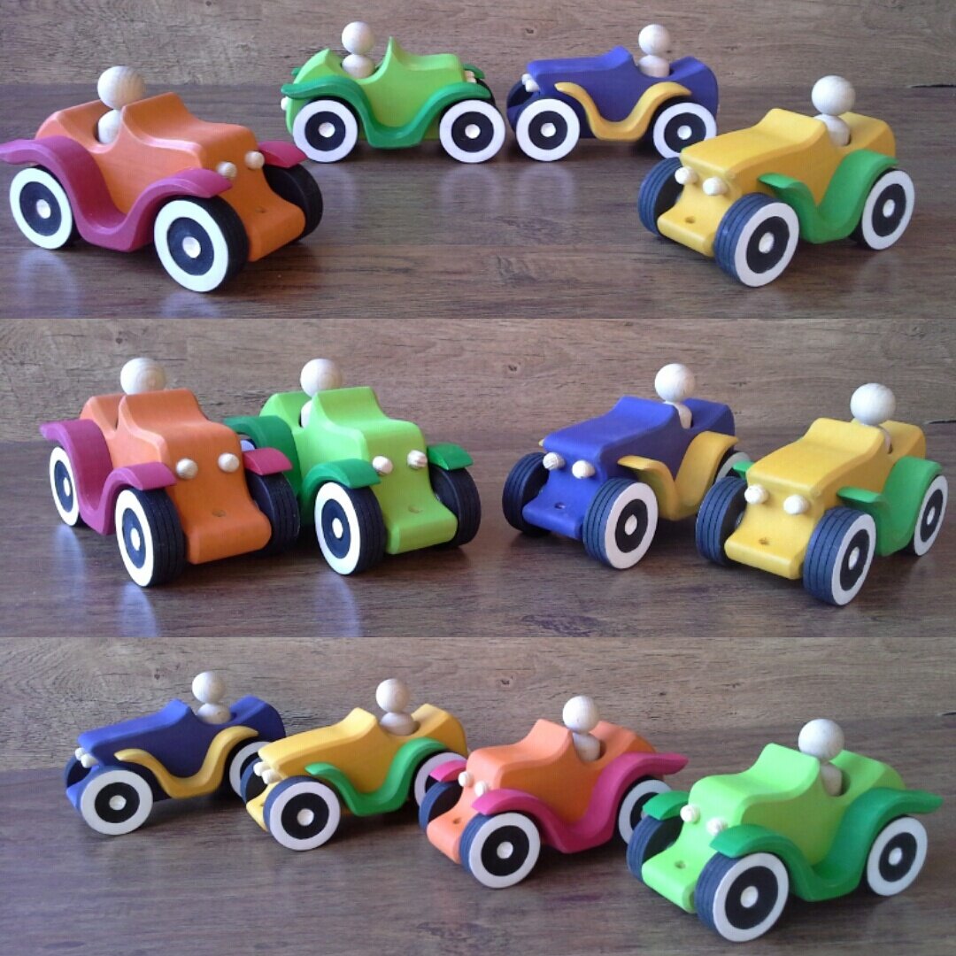 Всем большое здрасте! Сегодня поговорим об одном интересном техническом моменте при изготовлении игрушек с несколькими цветными накладными элементами. Например, как на этом фото накладные цветные боковые "крылья" на машинки.