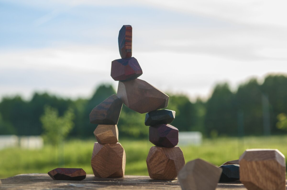Сделали мы с мужем, значит, игрушки для детей. Это японская игра Туми-иши. Принцип ее в том, чтобы найти баланс на гранях "кубиков" и построить конструкцию как можно выше. Давно собирались мы начать производить свои деревянные игрушки, и, наконец, решились))) Но сейчас не об этом. Игорь как всегда в нами всегда и везде, Наталья вот сразу неладное заподозрила и свалила подальше от станка, на котором мы кубики пилили. А рыж все время нос свой сует везде, вот и попался! По-моему, это лучшее применение наших игрушек! Мы с мужем по очереди давали Игорьку кусочек мяса и строили на его носу и на макушке - башенки из деревяшек))) Максимальное количество, правда, всего 3 штуки: жарко, дышит как паровоз, вот пирамидки и падают. Вот как научить собаку не дышать, пока не знаю, зато расскажу, как научить держать предметы на носу: Я делала так: ставила на нос или на макушку собаке что-нибудь легкое, а прямо перед носом другой рукой держала лакомство и говорила спокойным голосом, но максимально