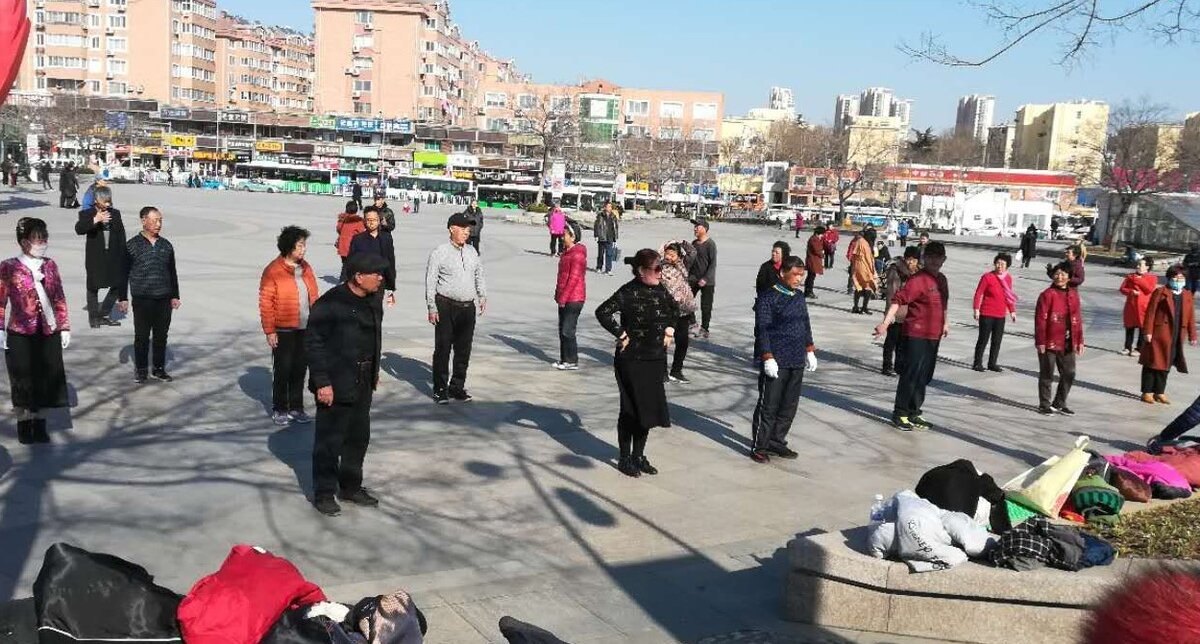 Да-да, старшее поколение в Китае проводит время активно. Бабульки собираются группами в парках и танцуют. Это не просто дискотека. Есть женщина-главарь, за которой остальные повторяют движения.