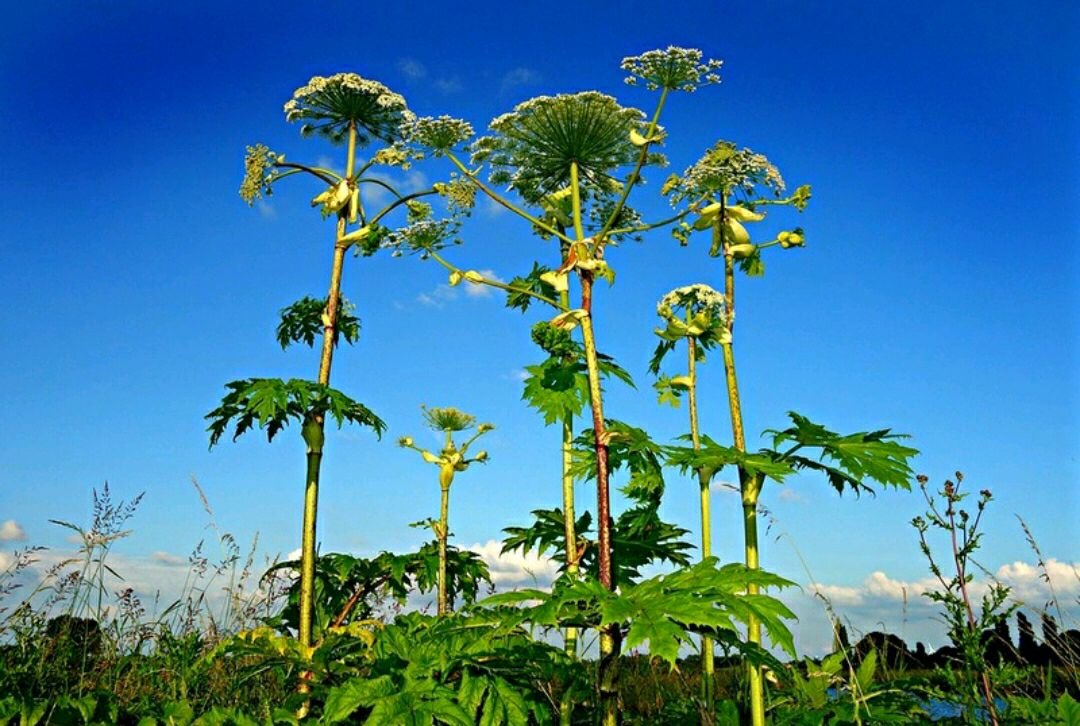 Борщевик Сосновского - опасное растение, может вырасти высотой до 4-х метров. Растет обычно вдоль дорог, заборов, на полях, лесных полянах и опушках. Цвести начинает в июне, а семена даёт в сентябре.