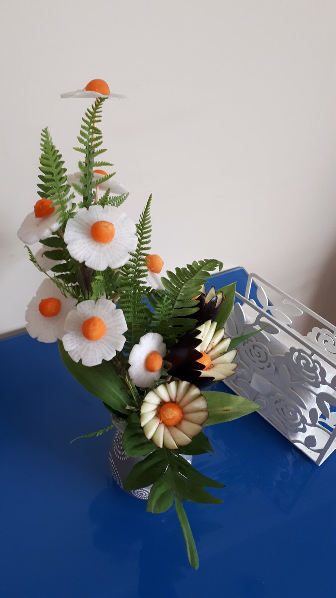 При покупке овощей для карвинга, обращаем внимание на их качество. Овощи не должны иметь повреждений и гнили, а также внутри не должны быть пустыми. Выбираем более тяжелые. Если овощ тяжелый, то он не пористый, внутри нет пустот. Не надо для карвинга покупать овощи с грядки, их мякоть очень сочная и упругая, при вырезании цветов, мелкие детали могут отломиться. Если купили такие овощи, пусть полежат три дня, потом можно вырезать.