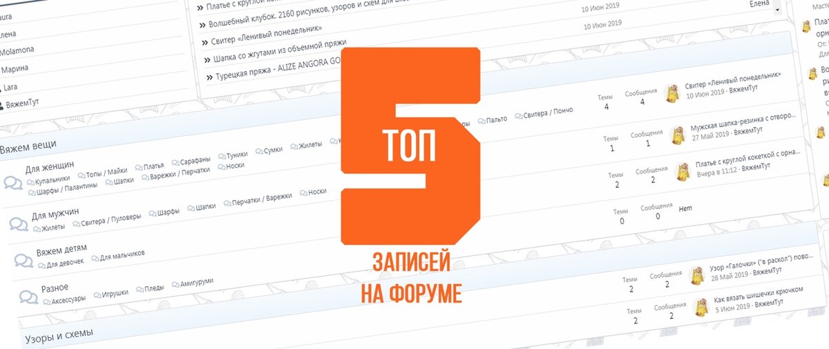 Кто был на сайте "Вяжем тут", тот знает, что у нас есть форум. Он еще совсем молодой и очень нуждается в вашей поддержке =) Но, не смотря на это, на форуме уже появились читаемые темы. Вот вам топ 5 самых популярных, может быть вам есть, что сказать и чем поделиться с другими: 5 место. Моя любимая туника (https://vyazhemtut.ru/forum/threads/moja-ljubimaja-tunika.17/unread) В этой теме видео от подписчицы, где она показывает процесс вязания летней туники. 4 место. Книга по вязанию Галины Паниной (доступна для скачивания для зарегистрированных пользователей). "Вязание на спицах. Самый полный и понятный самоучитель" 3 место. Описание жакета с короткими рукавами. https://vyazhemtut.ru/forum/threads/zhaket-s-korotkimi-rukavami-udlinennoj-spinkoj-i-zastezhkoj-na-pugovicy.5/ 2 место. Пряжа Alize Angora Gold. https://vyazhemtut.ru/forum/threads/tureckaja-prjazha-alize-angora-gold-moi-vpechatlenija.22/ 1 место. Обзор пряжи Ализ бамбук файн https://vyazhemtut.ru/forum/threads/moi-vpechatlen