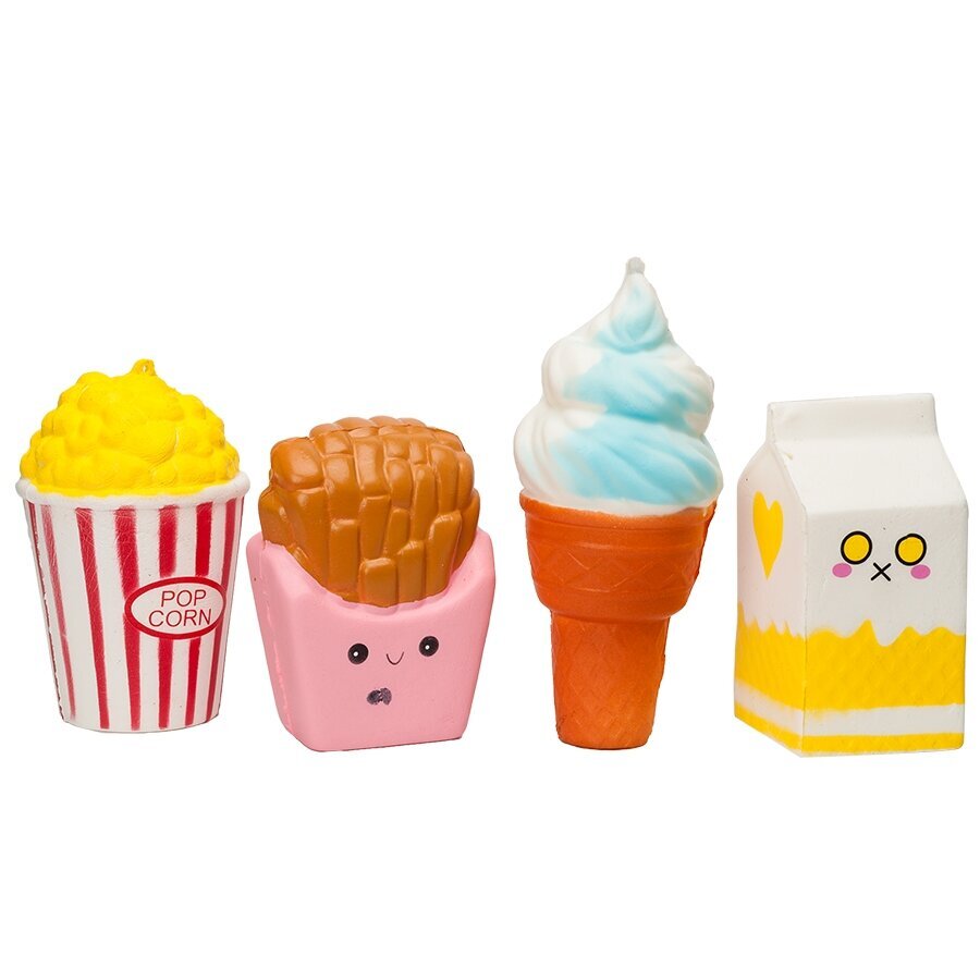 Для развития моторики самых маленьких подходит антистрессовый игровой набор, включающий 4 предмета: попкорн, пакет с молоком, мороженое и картофель фри. Эта мягкая игрушка абсолютно безопасна и занимательна для детей: с помощью реалистично выполненных искусственных видов продовольствия они осваивают мир продуктов и развивают сосредоточенность и фантазию, придумывая игры в магазин, огород, кухню или кафе.