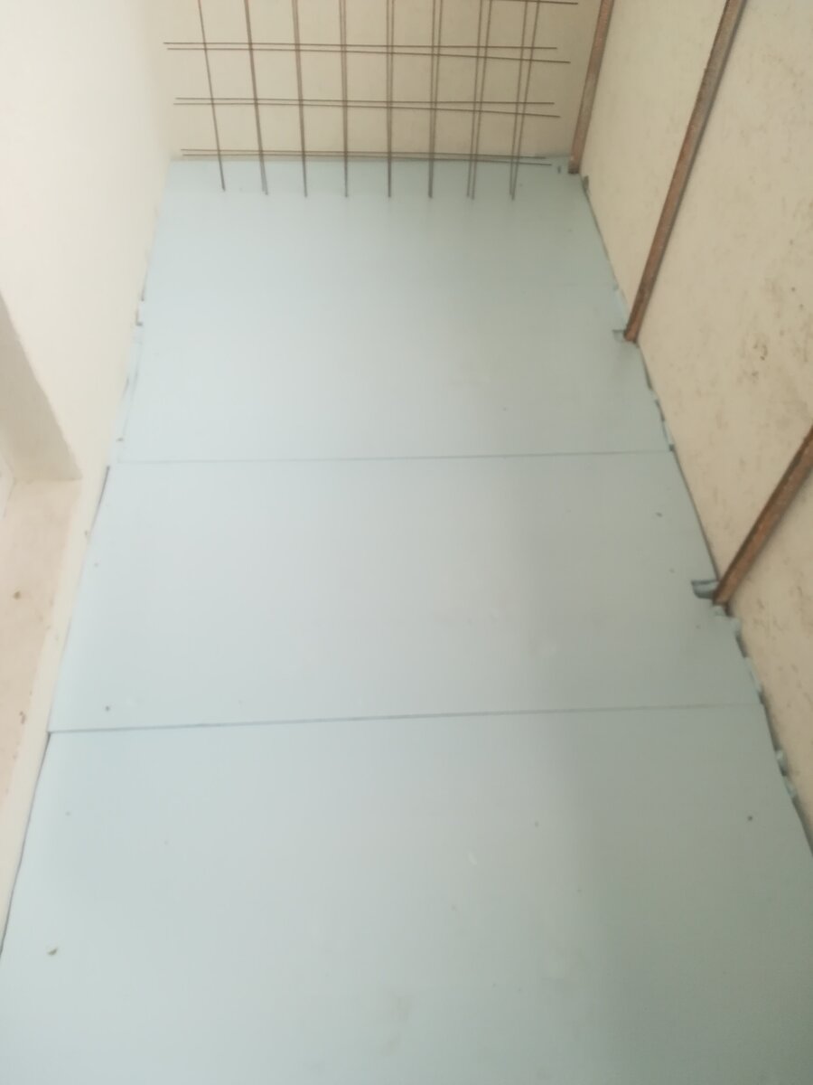 Подготовка балкона для укладки плитки. Расскажу о стандартном выполнение работ по утеплению балкона, установки маячков, заливки стяжки. С самого начала был уложен экструдированный пенополистерол, в просто народе "прессованный пенопласт". На этом этапе ни каких сложностей возникнуть не должно. Нужно в ведре развести клей и нанести его на подготовленную поверхность. Потом по верх уложить пенопласт, дополнительно нужно закрепить на "грибы". по пять штук в каждый лист. На следующем этапе нужно будет уложить фальгоизолон. Он способствует задерживанию тепла, что является очень важной частью. Потом укладываем кладочную сетку, для армирования стяжки. Важно чтобы сетка была немного приподнята относительно пола. Чтобы была армирующая часть. Если сетку не приподнять, то тогда можно заливать и без неё, так как от неё толку никакого не будет. Установка маячков в данном случае была исполнена из профиля 60 на 27мм. Всё делалось по лазерному уровню. Самое главное нужно учитывать что стяжка должна з