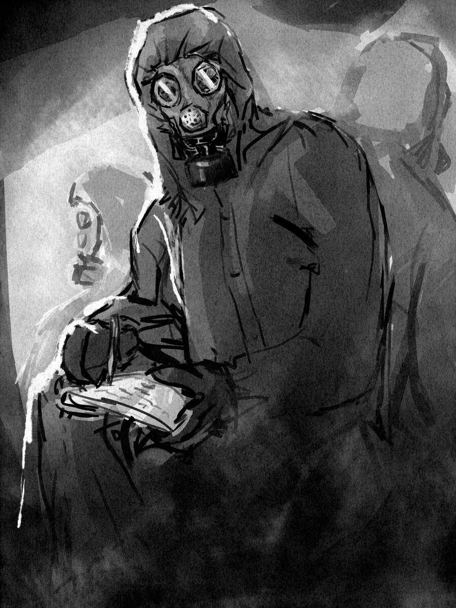Все улицы - покрыты останками. Где-то гниющими кусками трупов. Где-то тенями. Тут - кому как повезло. Окраина пострадала меньше центра, поэтому и сохранилось больше ужасов. С трудом выдержал и не заблевал себе противогаз. А снимать его было никак нельзя. С момента как мы впервые вылезли наружу из БТР и до момента дезактивации - противогаз полагалось носить бессменно. Впрочем - пара наших ребят не выдержала. Сорвали маски и опорожнили желудки. Им тут же дали медикаменты из АИ, но что с ними будет - я, честно говоря, не знаю. Может повезет. Может и нет.
