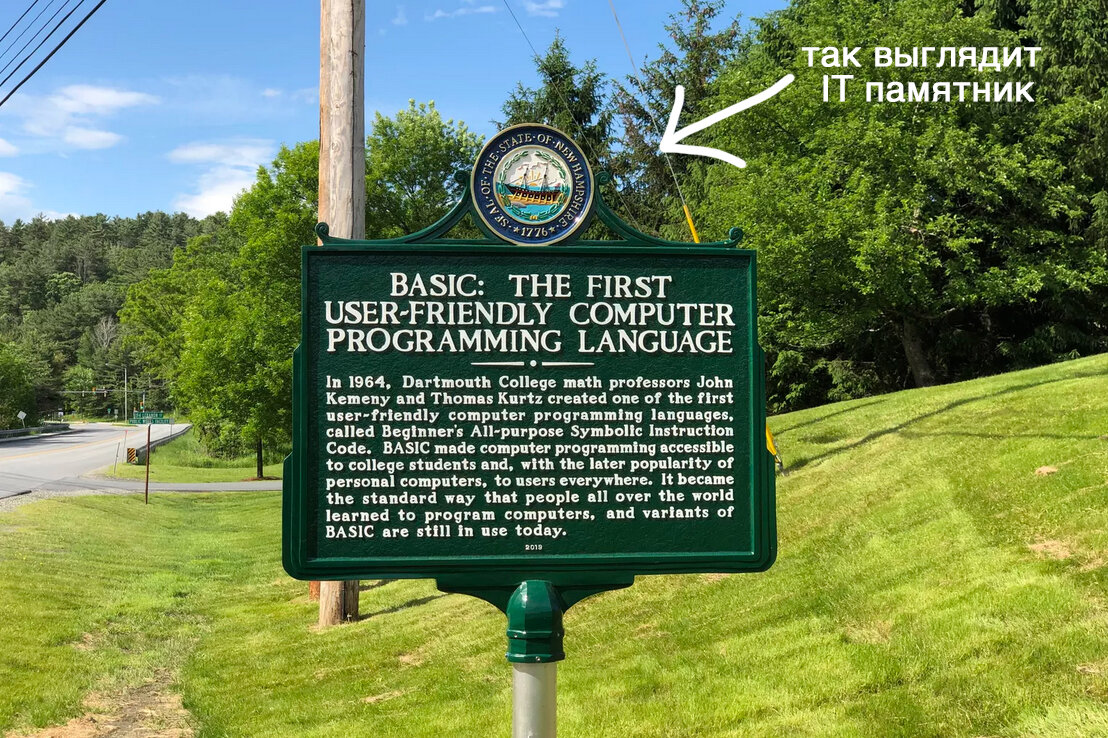 Буквально на днях, по инициативе журналиста Дэвида Брукса в штате Нью-Гэмпшир установили мемориальную доску в честь создания первого универсального языка программирования BASIC, авторами которого были профессора расположенного неподалеку Дартмутского колледжа.