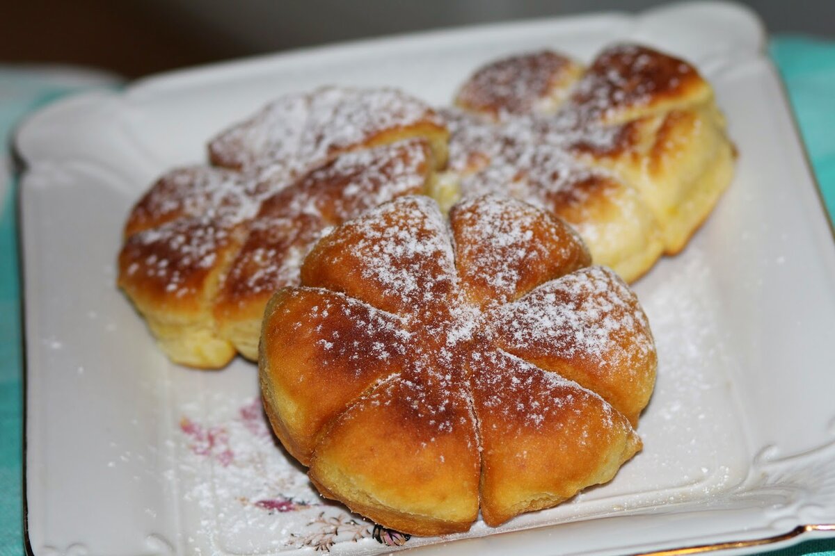 5. Замесить довольного густое тесто. 6. Растопить сливочное масло и в процессе замеса влить его. 7. Разогреть в сковороде растительное масло. Его должно быть достаточно, чтобы получилась жарка во фритюре. 8. С помощью ложки или смоченных в воде рук, придать тесту округлую форму пышек. Бабушка делала еще надрезы, так они были похожи на цветок. 9. Обжарит все пышки во фритюре с двух сторон. 10. Дать пышкам немного остыть и можно сразу кушать. При