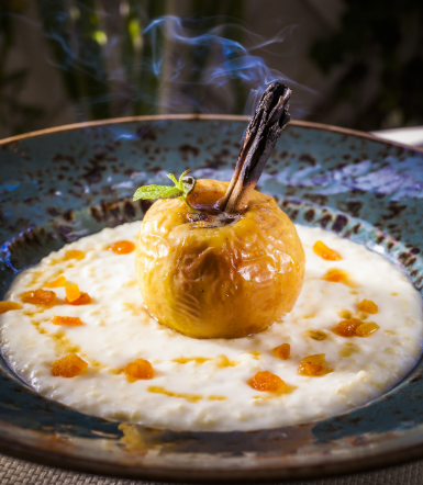 5. Выложить кашу в глубокое блюдо. В центр поместить запеченное яблоко.