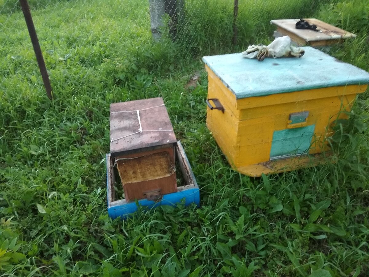 Сегодня (18.06.2019 г.) проверил одну из ловушек и увидел, что она заселена пчелами. Проверял ловушку днем и поэтому видел очень интенсивный лет пчелы. Как я в тот момент предположил, рой весьма неплохой по своей силе. Когда я привез ловушку на свою пасеку, то решил не оставлять пчел в ловушке, а сразу пересадить их в 16 рамочный улей. Открыв ловушку пчелы, были весьма возмущены, и поэтому несколько пчел выбралось на прилетную площадку. Когда открыл ловушку, то оказалось, что пчелы освежили старые рамки и из четырех рамок с вощиной уже успели отстроили 3 рамки, которые матка полностью засеяла расплодом. Когда пересаживал пчел в улей, то матку не видел. Все рамки были с открытым расплодом, что может значить, что рой попался недавно. Сейчас я пчелиный рой пересадил в новый улей и дал им кормовую рамку (хотя они уже успели самостоятельно пополнить свои запасы), а также поставил одну суш под засев и одну рамку с вощиной. Семья очень активная и как она развивается, мне пока нравится.