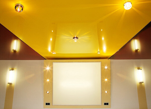 Требуемые светильники мастера вполне могут устанавливать непосредственно в специальные перекрытия, расположенные между основными потолками и приобретёнными глянцевыми полотнами. В случаях применений сразу нескольких осветительных приборов, любые помещения мгновенно превратятся в истинные произведения искусства.