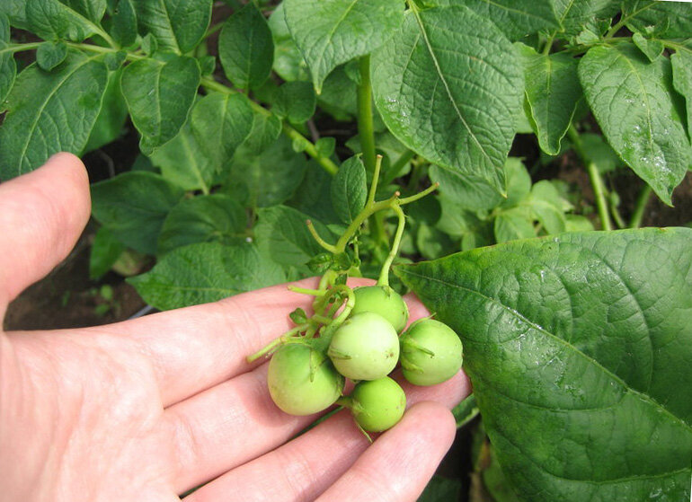 Многие огородники обрывают ягоды картофеля, считая, что они бесполезны и ядовиты. Такие огородники правы только на половину, про ядовитость, а вот про бесполезность в корне не правы. Пользы много от таких ягод. Люди, которые говорят, что ягоды необходимо обрывать и выкидывать, просто не знаю как их использовать.