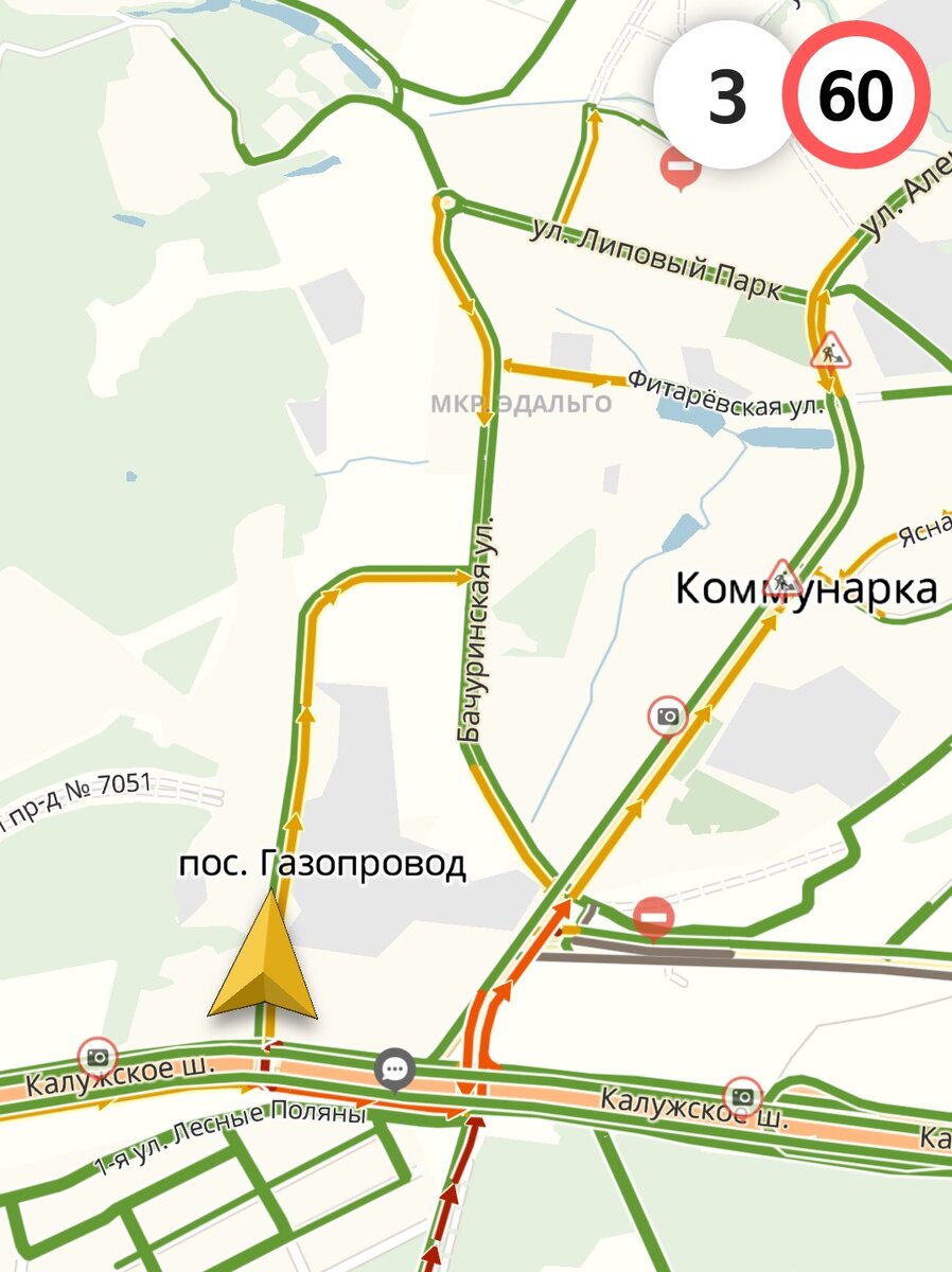 Когда еду на работу оставляю машину у метро Конького. И вот вчерашним летним вечером мчал с работы в Коммунарку. Вроде лето, пора отпусков, машин быть не ДОЛЖНО, а вот хрен, 6 километров за 40 минут. Пробка было около Мамырей, на въезде в Коммунарку, ну и в завершении пробка длиной с п. Газопровод. Интересно, что же будет осенью когда отпуска закончатся, построят еще несколько домов в ЖК"Новая звезда" и начнется заселение в ЖК"Скандинавия" и дома монстра по адресу ул. Липовый парк к.18? И такая дребедень каждый день. © Желтый цвет стрелок, на карте, на самом деле был красным.