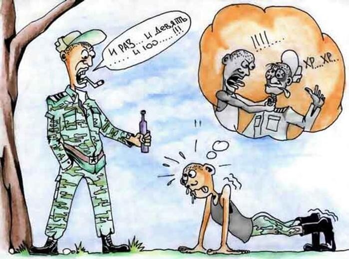 Нас в учебке с первых минут просветили. Вышел старшина, бугай здоровенный. Мы в трусах на приморском дождичке-тумане. 97% русские, остальные от прибалтов до якутов, мелкими вкраплениями. Нам проорали, что мы все никто, это там на гражданке вы были крутыми, здесь все грязь. И вот из этой грязи за 6 месяцев из нас вылепят сержантов, отличников боевой и политической... Кто-то сзади заржал, вся рота отжималась 100 раз. И в этом ключе, без вариантов, коллективная ответственность всех за любой косяк одного придурка. Один опоздал в строй при построении в столовую и вся рота, отказавшись добровольно от завтрака, побежала кросс до обеда. То же и с национальным вопросом. Кавказцы и азиаты, видимо, попали в МП просто, что бы заткнуть дыры регионального призыва. Ребята были неплохие, но к