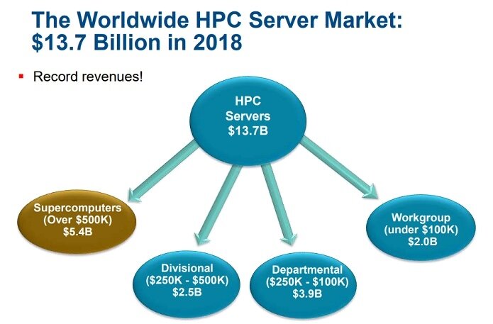 Реализация HPC-серверов возрастёт до $19,9 млрд с рекордных $13,7 млрд в 2018 году. В 2023-м спрос на суперкомпьютеры с эксафлопсной производительностью будет измеряться $1,4 млрд, на серверы для обработки ИИ-задач — $2,7 млрд, на оборудование для работы облачных сервисов — $5,5 млрд. Наибольшие темпы роста (примерно на 30 % в год) прогнозируются в сегменте серверов для искусственного интеллекта.