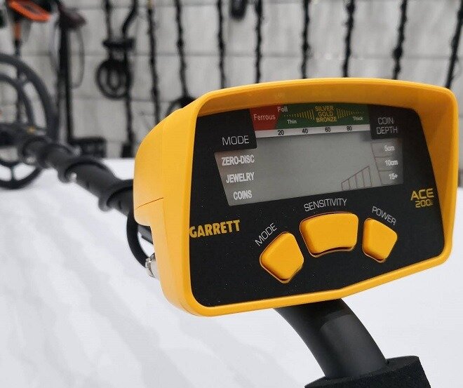 Управление металлоискателем Garret Ace 200i осуществляется с помощью трёх кнопок. Левой выбираем режим — он же программа поиска. Средней настраиваем чувствительность. Левая кнопка — самая важная. Она включает и выключает прибор.