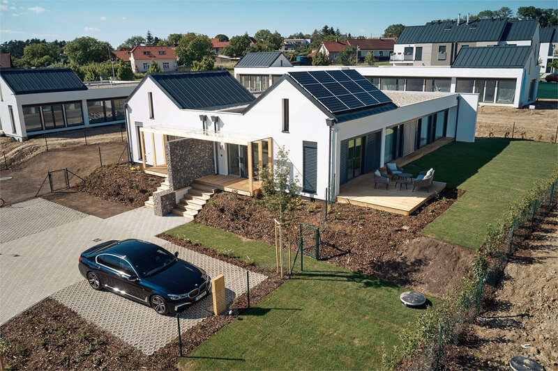 Представители чешской компании-застройщика сообщили, что в столице Чехии и ее окрестностях возведут уникальные дома с внедрением современных технологий. На данный момент в Высоком Уезде уже готов дом для просмотра. Недвижимость возводилась в соответствии с проектом под названием «Black Roofs». По словам девелоперской компании GETBERG, проект «Black Roofs» включает в себя 16 технологически совершенных особняков с энергоэффективной системой. Девелопер объявил о предпродажи объектов. На сегодняшний день на стадии строительства выкуплено 4 дома. Средняя площадь одного дома составляет 120 кв. м., а также земельный участок 600 кв. м. Данная недвижимость покупателю обойдется в 310 000 евро. Современный жилой комплекс расположен недалеко от Праги, всего в 15 минутах езды. Внутри дома установлены передовые датчики, интеллектуальные системы и иные продвинутые вещи. Рядом с домами есть лесная зона для отдыха, детский садик, супермаркет, развлекательная площадка и другие инфраструктурные объекты.