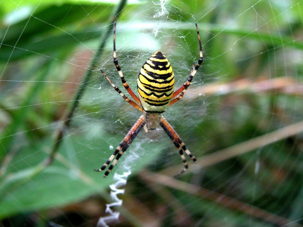 Кажется, в первый раз я увидела их в жаркое и засушливое лето 2010 года. Помните, что тогда было? Словно мы не в прохладном регионе обитаем, а рядом с пышущей жаром духовкой. Вот тогда, примерно в середине лета я в первый раз заметила на траве странную паутину. Вроде паутина как паутина, но там чётко выделялся шов. Я бы его назвала зигзагом, причём из намного более толстой нити, не прозрачной, а почти белой. В то ненормальное лето я не раз встречала и эти странные штопаные паутины, и сидящих на них ярко окрашенных пауков. Потом, в следующие годы, пауки куда-то пропали. По крайней мере их странные паутины с хорошо заметной «штопкой» мне не попадались. Но этим летом в цветнике снова знакомая паутина. Неужели нас опять ждёт жара и засуха?! Я решила выяснить, что это за паук. Оказалось, что аргиопа Брюнниха, или паук–оса (действительно похож!). Обычно они живут в более тёплых регионах, рядом со степями и даже пустынями. Но иногда оказываются севернее. Например, у нас в Подмосковье. Рассел