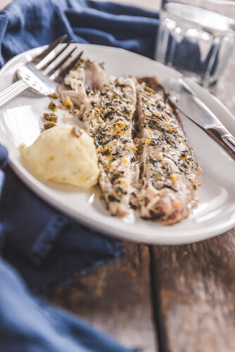 1. Каждую скумбрию выпотрошить, разрезать вдоль на 2 части, удалить кости.