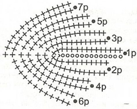 Привет всем рукодельницам! Сегодня будем вязать листик крючком. Схема несложная, особых знаний и навыков не требуется, связать сможет даже новичок. Такой листик может послужить отличным декором для вязаных головных уборов (например) или использоваться для составления объемной цветочной композиции (над ней сейчас работаю, позже покажу результат и поделюсь пошаговым описанием). Петли: воздушная петля (ВП), столбик без накида (СБН). Набираем 14 ВП (13 основные и 1 для подъема). 1 ряд: вводим крючок во вторую от него петлю и вяжем по 1 СБН в следующие 12 петель, в следующую петлю вяжем 6 СБН и продолжаем вязать с другой стороны цепочки из ВП 9 СБН. 2 ряд: 1 ВП подъема, 11 СБН, 2 СБН в одну петлю, 1 СБН, 2 СБН в одну петлю, 11 СБН. 3 ряд: 1 ВП подъема, 12 СБН, 2 СБН в одну петлю, 1 СБН, 2 СБН в одну петлю, 9 СБН. 4 ряд: 1 ВП подъема, 10 СБН, 2 СБН в одну петлю, 1 СБН, 2 СБН в одну петлю, 11 СБН. 5 ряд: 1 ВП подъема, 12 СБН, 2 СБН в одну петлю, 1 СБН, 2 СБН в одну петлю, 9 СБН. 6 ряд