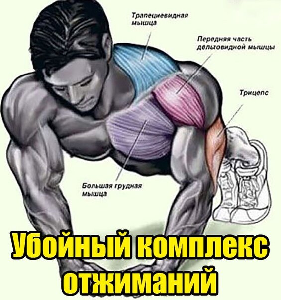 100 отжиманий ВСЕГО за 42 дня! Шестинедельная программа тренировок "100 отжиманий", одна из наиболее эффективных программ для развития грудных мышц и повышения уровня общей физической подготовки. Уровень "Выше среднего". Занятия нужно проводить три раза в неделю, между тренировками обязательно должен быть день отдыха. Отдых между подходами должен составлять 60 секунд (больше, если требуется). - Неделя 1 День | Подходы | Всего 1 | 10 12 7 7 9 | 45 2 | 10 12 8 8 12 | 50 3 | 11 15 9 9 13 | 57 - Неделя 2 День | Подходы | Всего 1 | 14 14 10 10 15 | 63 2 | 14 16 12 12 17 | 71 3 | 16 17 14 14 20 | 81 - Неделя 3 День | Подходы | Всего 1 | 14 18 14 14 20 | 80 2 | 20 25 15 15 25 | 100 3 | 22 30 20 20 28 | 120 - Неделя 4 День | Подходы | Всего 1 | 21 25 21 21 32 | 120 2 | 25 29 25 25 36 | 140 3 | 29 33 29 29 40 | 160 - Неделя 5 День | Подходы | Всего 1 | 36 40 30 24 40 | 170 2 | 19 19 22 22 18 18 22 45 | 185 3 | 20 20 24 24 20 20 22 50 | 200 - Неделя 6 День | Подходы | Всего 1 | 45