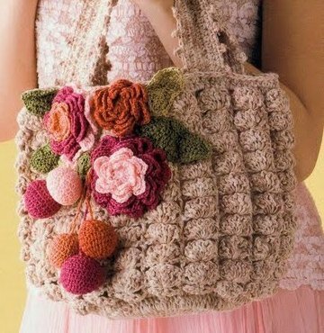 Несколько читателей попросили написать статью по этой чудесной сумочке. Много лет назад, хорошая знакомая поделилась со мной информацией на флешке: эксклюзивные и красивые модели вязанной одежды, сумочек и разных замечательных "чудесенок". Это было эксклюзивным в ту пору, когда хорошие журналы трудно купить, новые идеи найти почти невозможно. Я делала столько копий свим знакомым и родственникам, чтобы они тоже могли что-то связать ил просто полюбоваться вязанной красотой. Среди замечательных моделей была и эта сумочка. Что за ерунда, скажите вы, есть чудо достижения цивилизации - интернет! У меня был компьютер, но не было интернета. Сейчас, уже много лет как установлен вай фай. Я рада, что дошли блага и до нашего провинциального уголка! А в ту порус интернетом было туго, информацией делились путём " из рук в руки". Вот так выглядят цветочки на этой сумке. Согласитесь, вся красота изделия в цветочках? Честно говоря, эта сумочка мне сразу понравилась. Я загорелась, купила