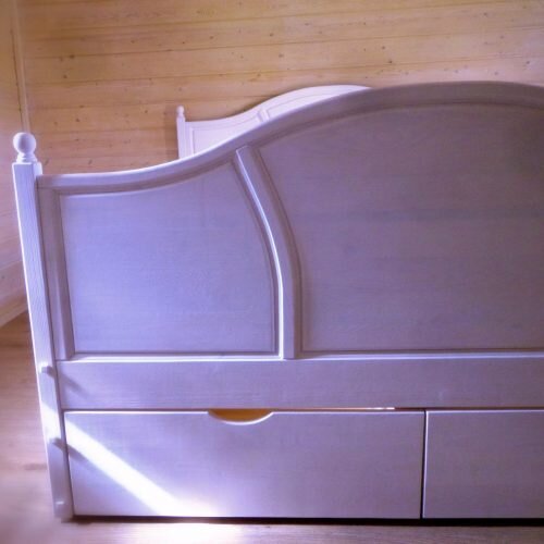 Белый цвет мебели ассоциируется с идеально свежим и чистым, лёгким, мирным и праздничным. При ясном и простом дизайне лучше всего использовать белый цвет, вид у такой мебели чистый и красивый. Изысканности придаёт патирование различными оттенками, но об этом в другой статье... Белый цвет даёт ощущение покоя, успокаивает, располагает к комфорту, помогает облегчить эмоциональное состояние. Значение белого цвета располагает к порядку и размеренности, если вам нужно “перезагрузить” свою жизнь – это ваш цвет! Цвет белый предлагает внутреннюю очистку и очищение ваших мыслей, чувств и, в конечном счёте, вашего духа. За белой мебелью нужно очень хорошо ухаживать, так как на нем видна любая пыль, пятна и другие загрязнения. Приобретая белую кровать нужно подумать о том, что бы она гармонично сочеталась с отделочными материалами, текстильными изделиями, проемами, арками и т.д. Деревянная кровать сделанная вручную и покрашенная в светлый тон хорошо впишется в кантри, рустик или этно стили.