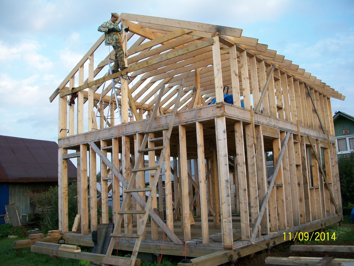 Как я и писал уже, что на возведение каркаса у нас ушло гораздо больше времени, чем планировалось. Закончили только в сентябре. Тогда же и утеплили пол. Как же это здорово – каркас Дома! Эти строгие прямые линии! Доска сухая, звонкая (и строганая как у нас)! И запах дерева. Люблю это! Готов скелет дома! И его нужно только нарастить мясом! Когда еду на машине и вижу строящийся каркас, обязательно остановлюсь и посмотрю. Чувство восторга заполняет мне сердце, и я радуюсь. …Вот такие чувства я испытывал почти пять лет назад. Во мне, к сожалению не очень развито поэтическое чувство, но когда я лазил по стойкам и стропилам мансарды у меня родились такие строки: Каркас подо мною! Один в вышинЕ, Стою я опершись по краю стремнины, Орёл с отдалённой поднявшись вершины, Парит неподвижно со мной наравне. Не судите строго, читатель, за высокий штиль и некоторую гиперболу... Так вот. Внимательный читатель возможно помнит, что согласно моему плану, в октябре мы должны были уже переехать в готовый д