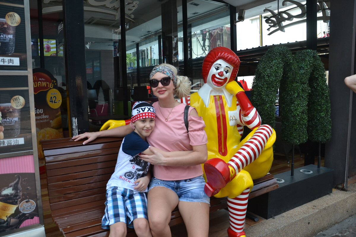 В итоге для нас, россиян, всё вообще очень грустно. Заходишь в тайский "Макдональдс" с ребёнком, покупаешь картошечку, пару бургеров и колу (ну нет у нас в Сибири "Макдональдса"!) Получаешь чек - 600-800 бат (1500 рублей). Ну его нафиг с такими ценами! Можно тайфудом неделю питаться.