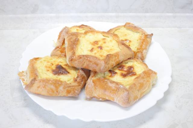 3 стакана муки 1 стакан сахара 2 щепотки соли 3 яйца 300 граммов творога 125 граммов сливочного масла /охлажденное/ 3/4 стакана кефира 1/2 пачки разрыхлителя 1/2 пачки ванилина Способ приготовления шаг 1 Приготовим тесто. Смешаем: 2 стакана муки+ 1/2 стакана сахара+щепотка соли+1/2 пачки разрыхлителя. Добавим 125 граммов сливочного масла и перетрем масло с подготов-ленной смесью. В полученную перетертую массу вольем 3/4 стакана кефира и вобьем 1 яйцо. Замесим тесто, подсыпав 1 стакан муки: оно получится мягким и липким к рукам, как дрожжевое. Слегка примучните комок теста, оберните пищевой пленкой и уберите на холод на 30-40 минут. шаг 2 Подготовим начинку. Выложим творог в чашу, добавим к нему: 1/2 пачки ванилина+ щепотка соли+1 яйцо+1/2 стакана сахара. Все тщательно перемешаем. (У меня творог с мелким зерном. Если ваш творог имеет крупное зерно, то желательно его протереть через сито, либо начинку перемешать при помощи блендера). При желании в начинку можно добавить предварительно за