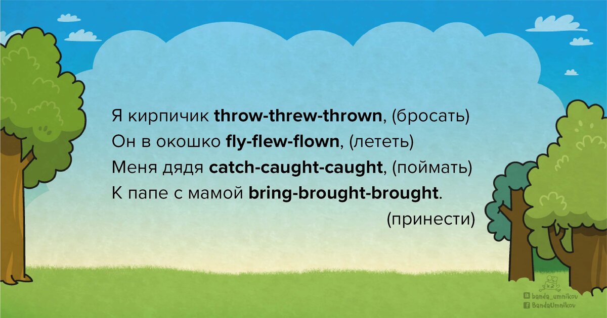 Делитесь в комментариях своими стишками для запоминания неправильных глаголов!