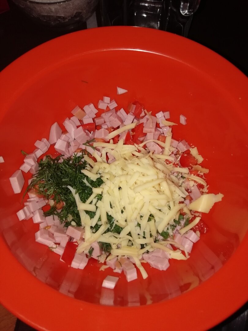 Очень вкусное, сытное, бюджетное и простое блюдо! Нам понадобится: Начнем.... Помидор, колбасу, укроп - мелко режем. Туда же добавляем половину натертого сыра. Заправляем 2 ложками майонеза Протвинь застилаем пергаментной бумагой, выкладываем порезанный хлеб, на него намазываем начинку. Сверху посыпаем оставшейся половиной сыра. Ставим в предварительно разогретую духовку на 200 градусов - 10 минут. Наслаждаемся!
