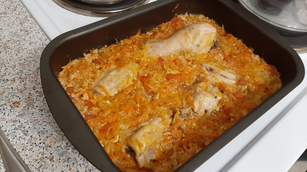 Хотите быстро и вкусно накрмить семью? То это превосходный вариант. Подготовка займёт минимум времени, а готовится в духовке. Подойдёт даже для тех, кто соблюдает диету. Сегодня у меня порция на троих. Для этого нам понадобится: •Курица (любая часть) • Кабачок • Морковь • Лук репчатый • Помидор • Натуральный йогурт - 200 мл (я его готовлю дома, рецепт можете посмотреть перейдя по ссылке - Натуральный йогурт в домашних условиях) • Вода - 60 мл • Соль, специи, зелень - по вкусу Как приготовить: 1. Для начала лук с морковью обжарим на сковороде. Если будете готовить как диетическое, то лук с морковью не обжаривать. 2. Выложим курицу на противень. 3. Натрем на крупной тёрке кабачок, нарежем кубиками помидор и распределим по противню. 4. Затем выложим лук с морковью. 5. Приготовим заливку. Премешаем натуральный йогурт с водой и специями. 6. Заливаем в противень. Накрывем фольгой и отправим в разработую духовку до 180° на 45 минут. Затем ещё на 10 минут уже без фольги