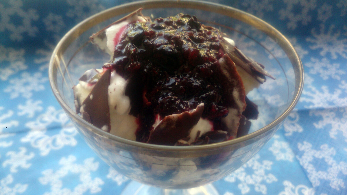 Перекручиваем смородину через мясорубку или можно взбить блендером.