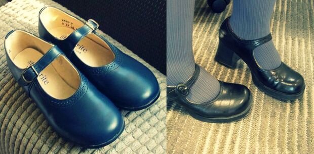 Для начала стоит приобрести пару кожаных туфель «Мэри Джейн» (Mary Janes) или черных кожаных полуботинок, оксфордов, с металлическими набойками или без них. Туфли могут быть на завязках, на пряжках и т.п.