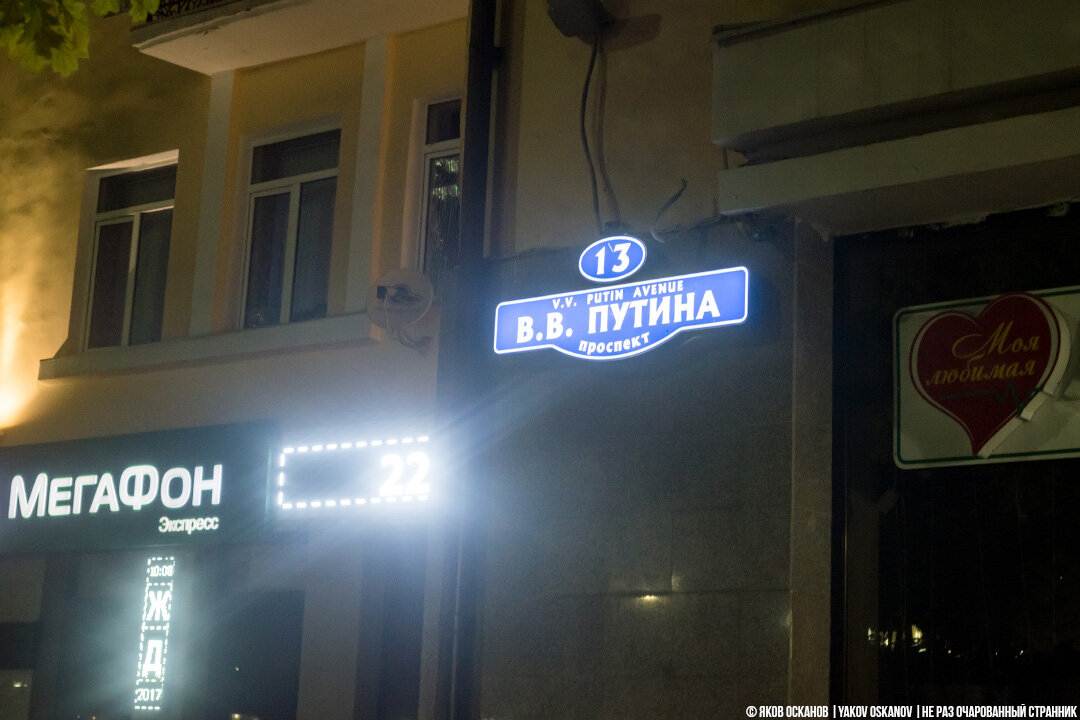 Я думал, что приеду в Грозный и меня поразит невероятное шоу фонтанов или потрясающая мечеть "Сердце Чечни". Но поразило не это. Проспект Путина. Сначала я немного не поверил навигатору, потом присмотрелся – нет, всё верно. Проспект Путина. Полез, естественно, в интернет. Оказывается, что проспект так назвали ещё в 2008 году. 5 октября, в день открытия проспекта после реставрационных работ. Нашёл и цитату Рамзана Кадырова, который так мотивировал свою инициативу. «На сегодняшний день с уверенностью могу сказать, что 99% населения Чеченской республики доверяют Путину и поддерживают руководство России. В знак благодарности чеченского народа проспект Победы отныне будет носить имя национального лидера — Владимира Путина. Это наша дань уважения человеку, который сделал так много для страны и для всех нас», — объяснил свое решение Кадыров. Я, если честно, считаю формулировку "национальный лидер" излишне пафосной. Веет от неё какой-то "советчиной" в плохом смысле этого слова. И хотя я отнош